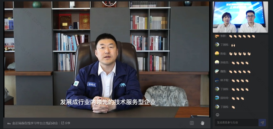 為持續(xù)做好疫情防控工作,避免人員聚集,“金正環(huán)保在線學(xué)習(xí)平臺”啟動會以線上直播形式進(jìn)行,煙臺金正環(huán)保總經(jīng)理李越彪線上致辭。